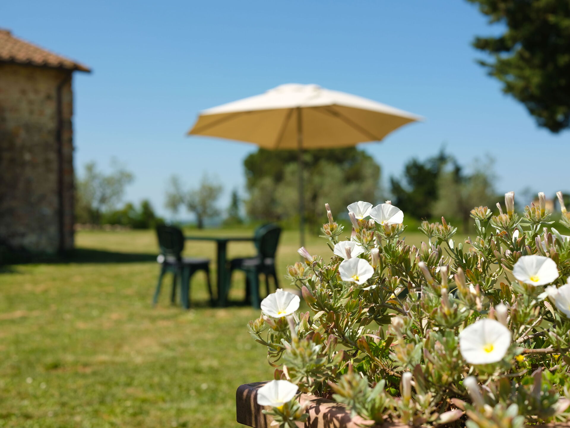 A disposizione degli ospiti: giardino attrezzato con tavoli e sedie, piscina (12 x 6 m - massima profondità 1,8 m - aperta dal 01/05 al 30/09) utilizzata anche dai proprietari e barbecue in comune. Aria condizionata. L’accesso alla proprietà tramite una strada non asfaltata ma in buone condizioni. Parcheggio all'interno della proprietà. Su richiesta è possibile noleggiare un letto supplementare a € 62,- / a settimana da pagare sul posto. Lettino per bebé (disponibile gratuitamente). Sono ammessi animali domestici di piccola taglia. Le finestre degli appartamenti sono dotate di zanzariere.